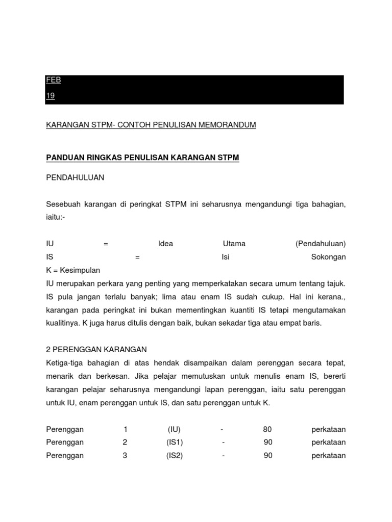 Panduan Ringkas Penulisan Karangan Stpm Memorandum Pdf